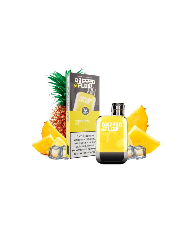 DrDripped GoFlow Disposable Pineapple Ice 20mg. Explora el sabor ácido y dulce a la vez de la piña tropical fusionado con una ola helada, ideal para quienes buscan una sensación revitalizante.