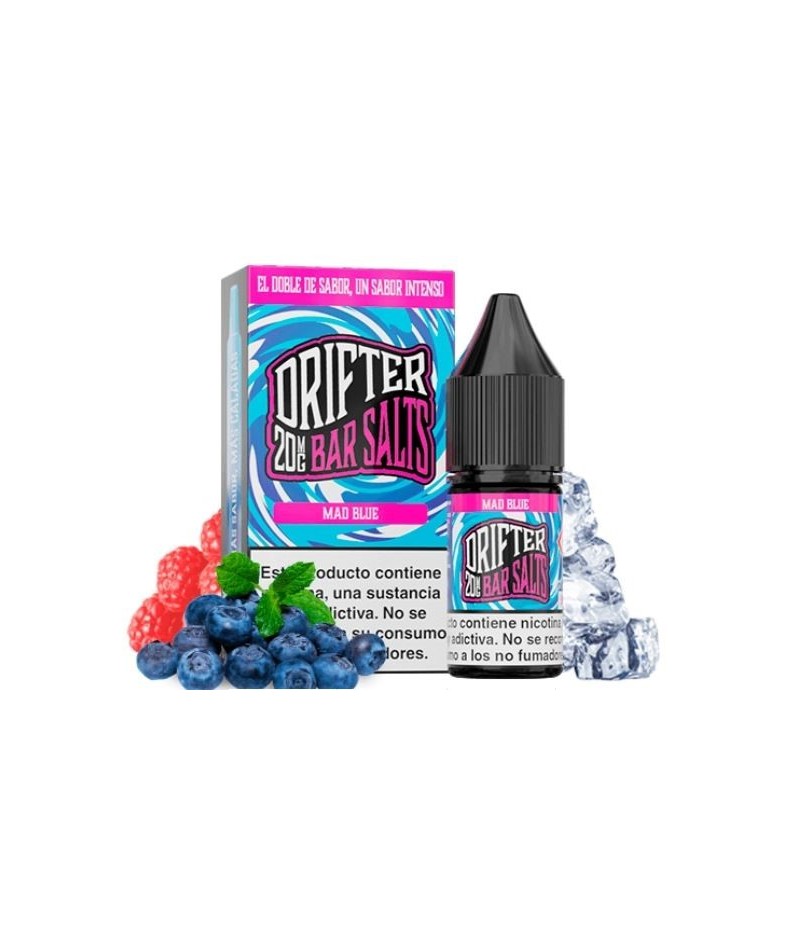 Juice Sauz Drifter Bar Salts Mad Blue. Disfruta de la combinación de arándanos azules y frambuesas, realzada con un toque de frescura helada. ¡Te cautivará!