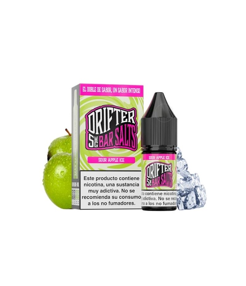 Juice Sauz Drifter Bar Sour Apple Ice. El sabor crujiente y vibrante de la manzana verde se mezcla armoniosamente con un toque de frescura glacial en cada puff.