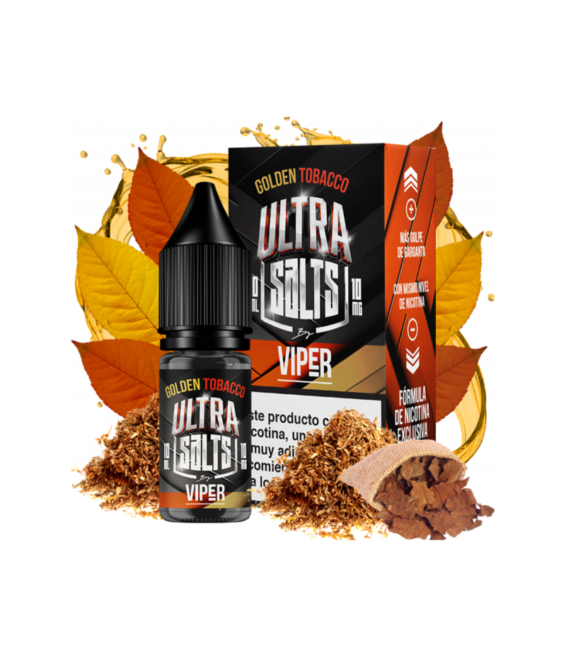 El líquido Golden Tobacco de Ultra Salts by Viper recrea el auténtico sabor a tabaco rubio. Un líquido para los amantes de lo clásico, con un sabor a tabaco rubio aromatizado con sutiles notas ahumadas.