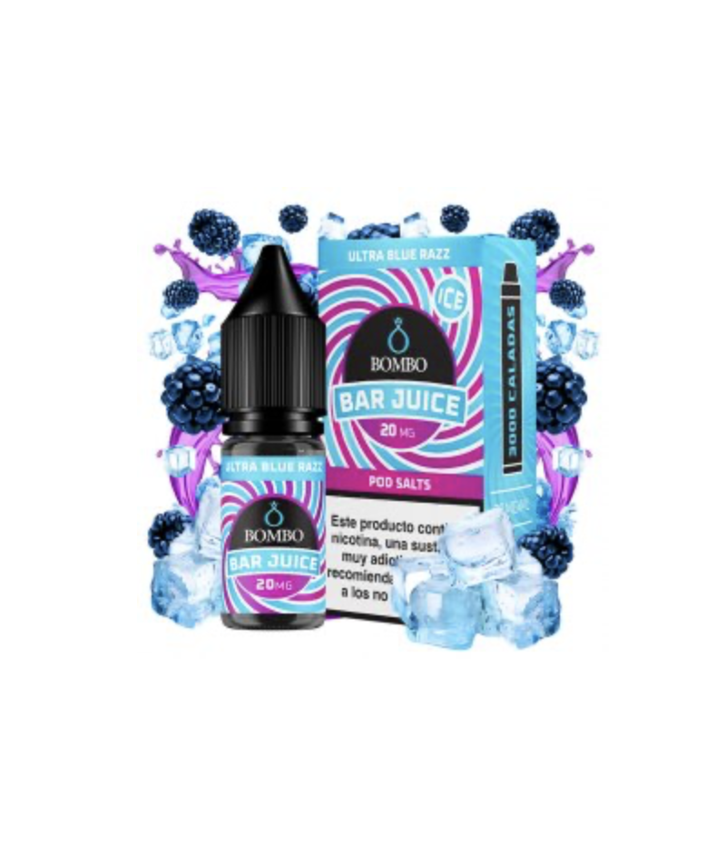 El líquido Ultra Blue Razz Ice de Bar Juice Nic Salts by Bombo sabe a frambuesas azules combinadas con un sutil toque cítrico. Un deliciosa receta en la que Bombo ha logrado una intensidad sin precedentes.