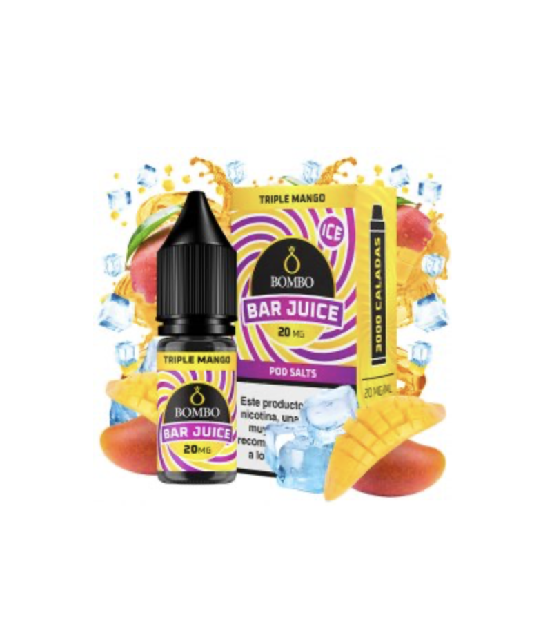 El líquido Triple Mango Ice de Bar Juice Nic Salts by Bombo ofrece el sabor a mango definitivo, consiguiendo destacar los apreciados matices de esta fruta exótica. Una explosión de dulzor refrescante sin precedentes.